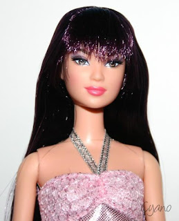 Her nice dark purple hair just got set so its still wet. I put her on a ballerina bod to work with so her original body wont get damaged.